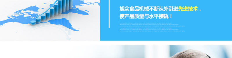 廣州旭眾食品機械有限公司是一家集科研開發(fā),生產(chǎn)設(shè)計,營銷服務(wù)為一體的現(xiàn)代化生產(chǎn)企業(yè)?,F(xiàn)代化生產(chǎn)車間,精湛制造技術(shù),所產(chǎn)機械歷經(jīng)市場重重考驗,不斷贏得海內(nèi)外客戶的贊譽。