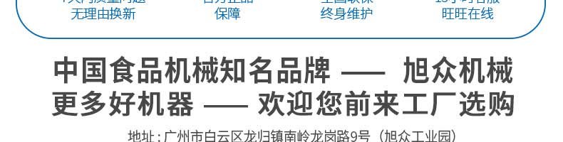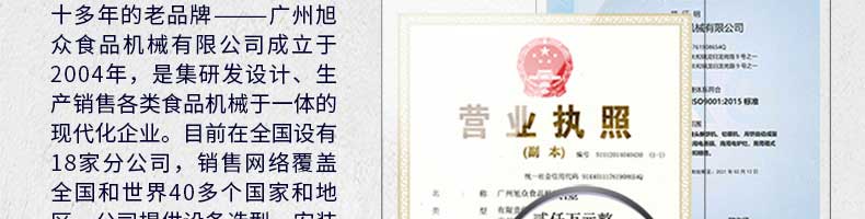 廣州旭眾食品機(jī)械有限公司是一家集科研開發(fā),生產(chǎn)設(shè)計(jì),營銷服務(wù)為一體的現(xiàn)代化生產(chǎn)企業(yè)。現(xiàn)代化生產(chǎn)車間,精湛制造技術(shù),所產(chǎn)機(jī)械歷經(jīng)市場(chǎng)重重考驗(yàn),不斷贏得海內(nèi)外客戶的贊譽(yù)。