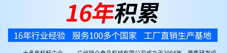 廣州旭眾食品機械有限公司是一家集科研開發(fā),生產(chǎn)設(shè)計,營銷服務為一體的現(xiàn)代化生產(chǎn)企業(yè)?,F(xiàn)代化生產(chǎn)車間,精湛制造技術(shù),所產(chǎn)機械歷經(jīng)市場重重考驗,不斷贏得海內(nèi)外客戶的贊譽。
