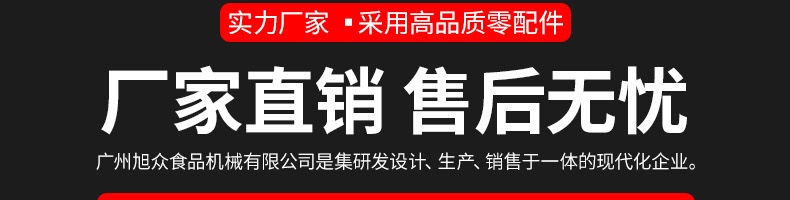 廣州旭眾食品機(jī)械有限公司是一家集科研開發(fā),生產(chǎn)設(shè)計,營銷服務(wù)為一體的現(xiàn)代化生產(chǎn)企業(yè)?,F(xiàn)代化生產(chǎn)車間,精湛制造技術(shù),所產(chǎn)機(jī)械歷經(jīng)市場重重考驗,不斷贏得海內(nèi)外客戶的贊譽(yù)。