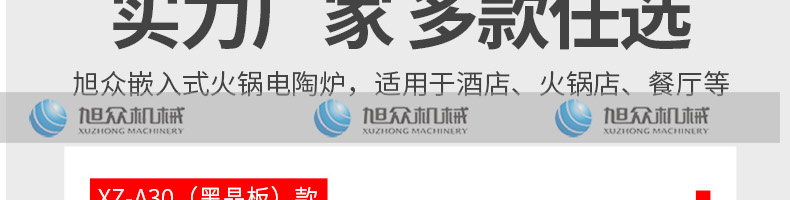 嵌入式電陶爐XZ-A30,實力廠家·采用高品質(zhì)零配件。廠家直銷,售后無憂。廣州旭眾食品機(jī)械有限公司是集研發(fā)設(shè)計、生產(chǎn)銷售于一體的現(xiàn)代化企業(yè)。一站式購機(jī),無中間差價。