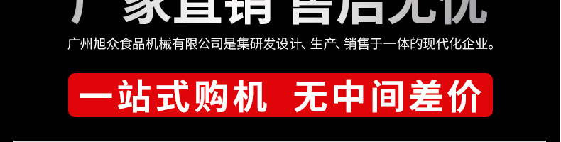 廣州旭眾食品機(jī)械有限公司是一家集科研開發(fā),生產(chǎn)設(shè)計(jì),營銷服務(wù)為一體的現(xiàn)代化生產(chǎn)企業(yè)?,F(xiàn)代化生產(chǎn)車間,精湛制造技術(shù),所產(chǎn)機(jī)械歷經(jīng)市場重重考驗(yàn),不斷贏得海內(nèi)外客戶的贊譽(yù)。