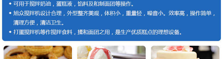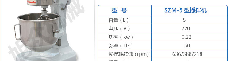 SZM-5型攪拌機(jī),可用于攪拌奶油、蛋糕液、餡料及和制面團(tuán)等操作。打蛋攪拌機(jī)等作攪拌食料、揉和面團(tuán)之用,是生產(chǎn)優(yōu)質(zhì)糕點(diǎn)的理想設(shè)備,適用于酒店、飯店、學(xué)校部門(mén)、面包屋以及食品廠(chǎng)家。