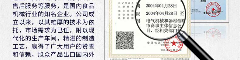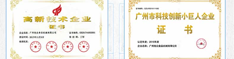 廣州旭眾食品機械有限公司是一家集科研開發(fā),生產(chǎn)設(shè)計,營銷服務(wù)為一體的現(xiàn)代化生產(chǎn)企業(yè)。現(xiàn)代化生產(chǎn)車間,精湛制造技術(shù),所產(chǎn)機械歷經(jīng)市場重重考驗,不斷贏得海內(nèi)外客戶的贊譽。