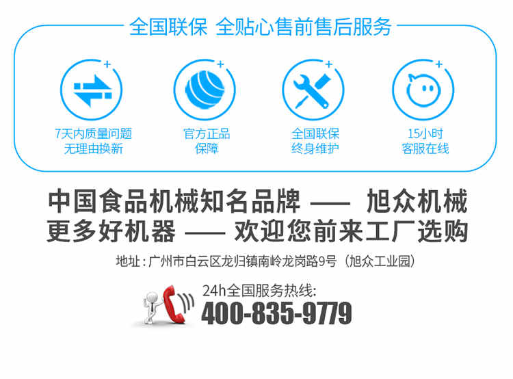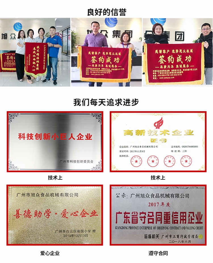 廣州旭眾食品機(jī)械有限公司是一家集科研開(kāi)發(fā),生產(chǎn)設(shè)計(jì),營(yíng)銷(xiāo)服務(wù)為一體的現(xiàn)代化生產(chǎn)企業(yè)。現(xiàn)代化生產(chǎn)車(chē)間,精湛制造技術(shù),所產(chǎn)機(jī)械歷經(jīng)市場(chǎng)重重考驗(yàn),不斷贏得海內(nèi)外客戶(hù)的贊譽(yù)。