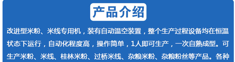 SZ-250多功能米粉機,生產(chǎn)多樣性可生產(chǎn)米粉、米線、粉絲、粉條、、年糕、玉米面條、各種雜糧粉絲、各種面條、雜糧面條、彩色面條以及以紅薯、玉米、大豆、蠶豆等制成淀粉為原料的等多種食品而且每種食品厚薄、粗細等規(guī)格可根據(jù)需要任意調(diào)整。