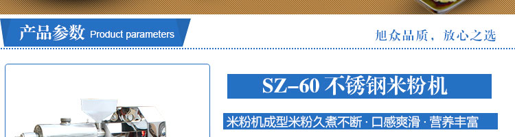 SZ-60不銹鋼米粉機,可生產(chǎn)米粉、米線、桂林米粉、過橋米線、年糕、糍粑等產(chǎn)品。各種形狀都可生產(chǎn)(圓、扁),加工食品外表光滑,厚薄、寬窄、粗細均勻可調(diào),筋軟適度,有彈性,口感柔軟、味道純正。