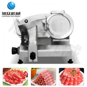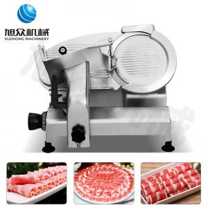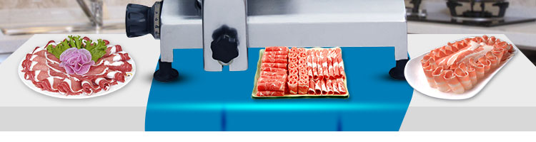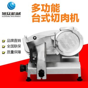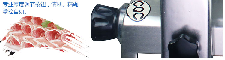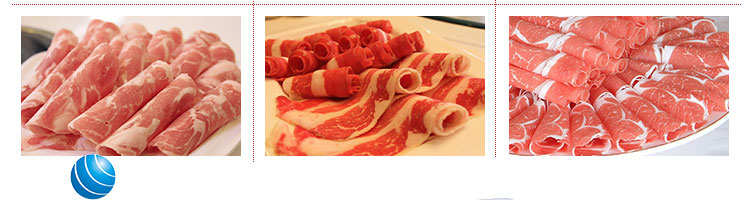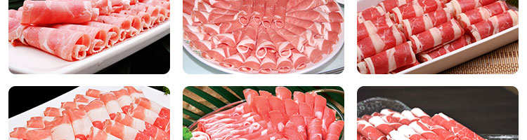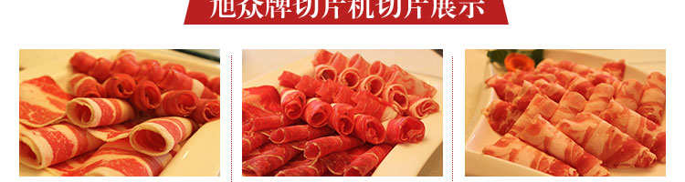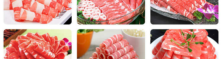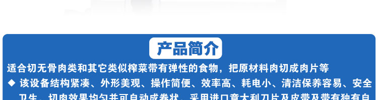 臺式全自動切片機,適合切無骨肉類和其他類似榨菜帶有彈性的食物,把原材料肉切成肉片,并可自動成卷狀??汕信H馄?、羊肉片等