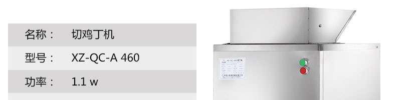 XZ-QC-A460切丁機(jī),切雞丁機(jī)適合將帶軟骨的禽類,如雞、鴨、鵝、鴿、魚類等切成塊(?。睢1鞠盗性O(shè)備工作效率高,采用不銹鋼制作,美觀耐用,切割快速,少碎骨。