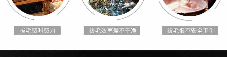 鵝鴨型脫毛機(jī),本機(jī)用于雞、鴨、鵝宰殺后的自動(dòng)脫毛,還可用于脫姜皮、脫馬鈴薯皮、脫魚鱗等農(nóng)產(chǎn)品。本機(jī)操作簡單,省力、省時(shí)間、工作效率相當(dāng)于十多個(gè)人的手工勞動(dòng)。